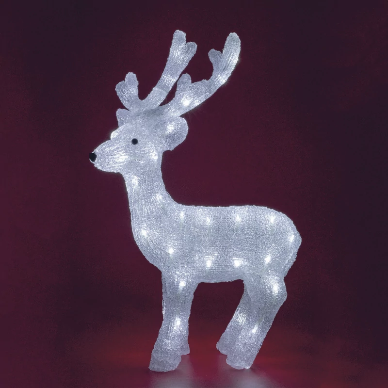 A KDA 3 típusú akril rénszarvas kül- és beltéren egyaránt kiválóan alkalmazható dekoráció. Impozáns méreteiből (63 x 36,5 cm + 3 m kábel) adódóan azonban kültéren talán gyakrabban találkozhatunk vele. Világítását 50 db hidegfehér LED biztosítja. Tápellátását pedig kültéri kivitelben kapható IP44-es adapter biztosítja. Válassza a minőségi termékeket és rendeljen webáruházunkból.