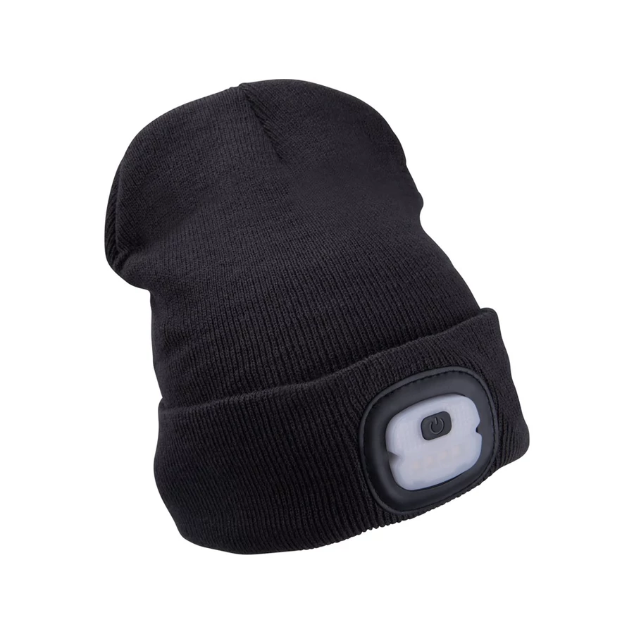 Extol sapka kivehető LED homloklámpával, kötött, fekete, pomponnal, 3.7V, 300mAh