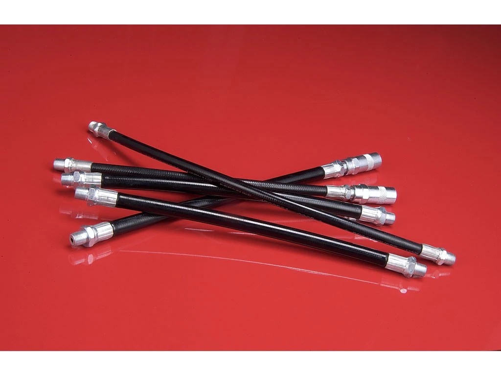 Nagynyomású zsírzóprés összekötő tömlő, mindkét végén csatlakozóval, lágy zsírhoz.