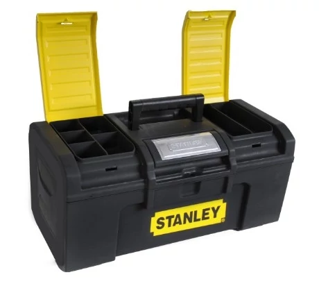 Stanley Basic 19"-os szerszámosláda."Egykezes csat" a könnyű nyitás, és zárás érdekében.Robosztus forma, nagy tárolótér.Kivehető tálca.Szortimenter a fedélben.48,6x26,6x23,6cm.