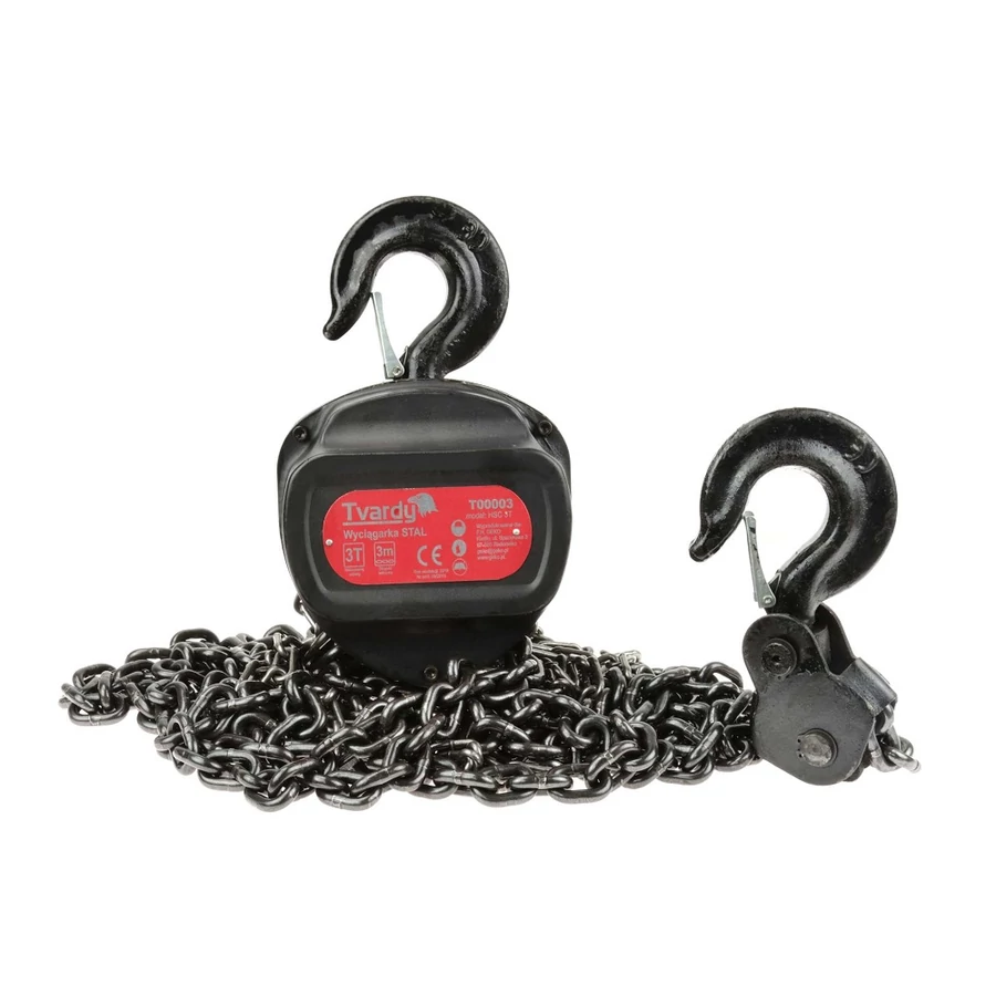 Professzionális láncos emelő 3000 kg 3 m TVARDY. Hatékony és tartós láncos emelő. A láncos emelő egy olyan eszköz, amely nehéz tárgyak függőleges síkban történő emelésére szolgál. Alkalmazható például belső égésű motorok személyautókból történő kiszereléséhez.