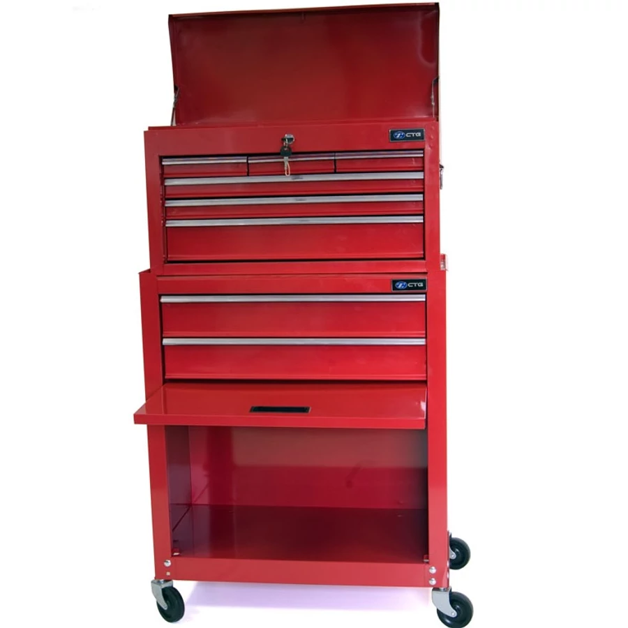 Alsó rekesze csukható. A fogantyú segítségével az ajtó felnyitható, majd becsúsztatható a fiókok alá, így nyitott szerszámtárolóként is használható.