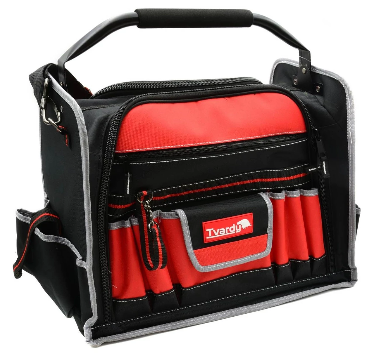 Nagyméretű szerszámos táska 56 darab szerszámtartó zsebbel.