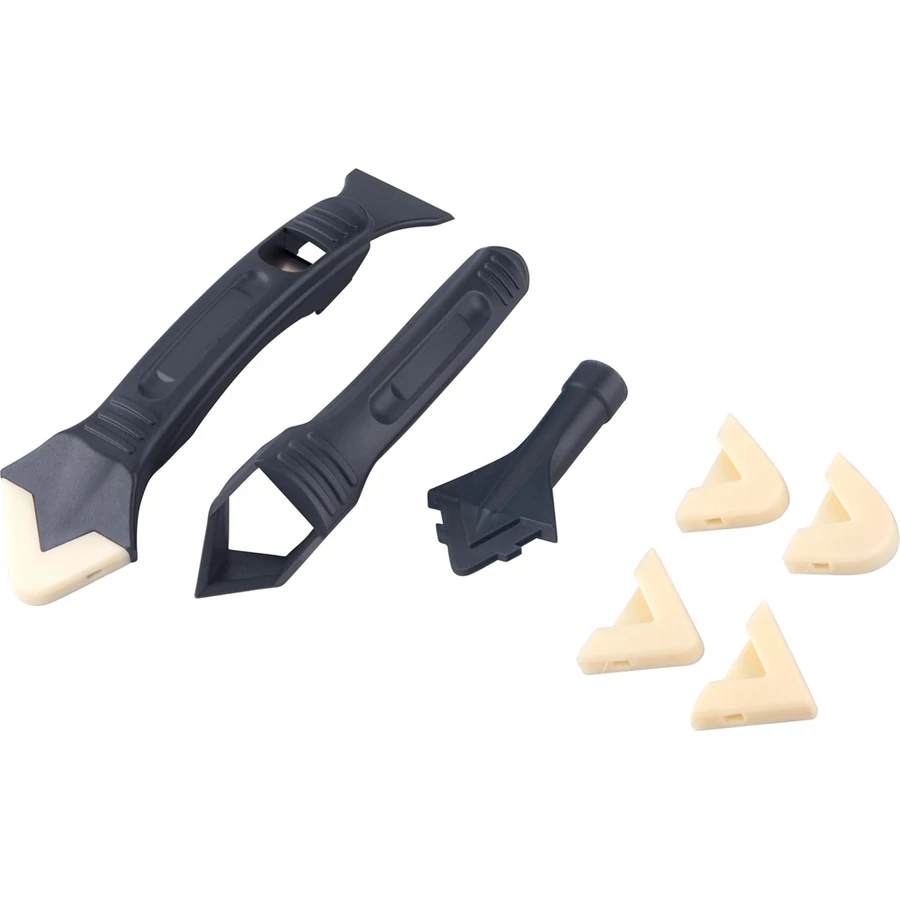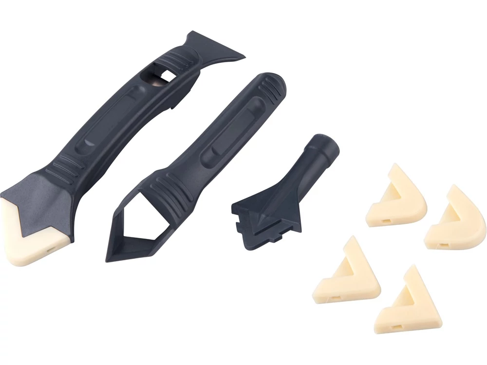 - 3 db ABS műanyag szerszám: fugalehúzó- és kaparó, fuga eltávolító, kenőfej+ 5 db szilikon lehúzóprofil R=3-6-10-13-17 mm