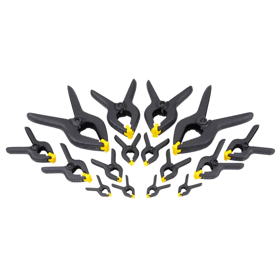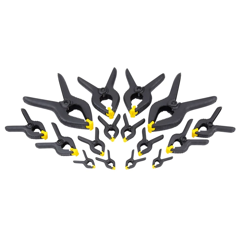 - 16db szorítócsipesz, könnyű rögzítési és szorítási feladatokhoz