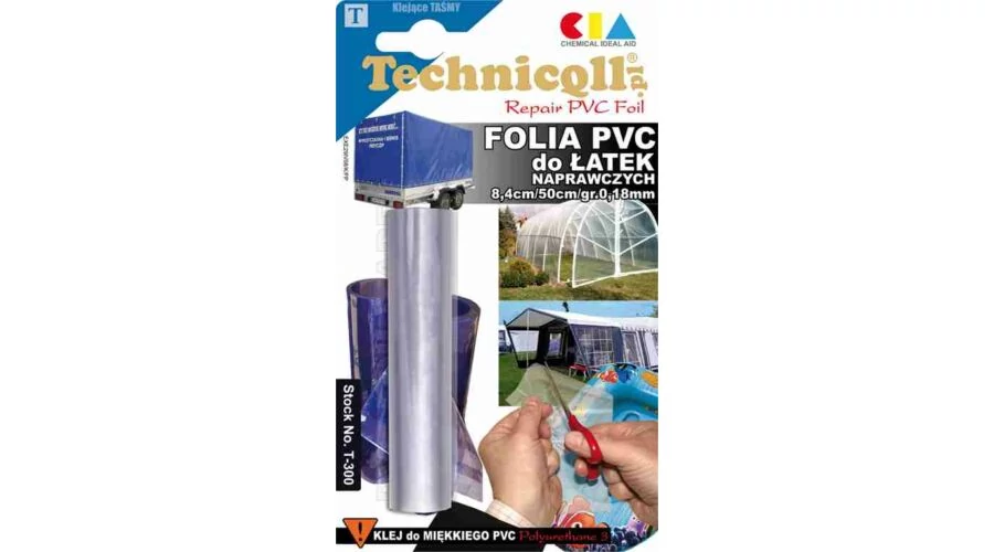 A javító foltokhoz használható PVC fólia speciális, színtelen anyagból készült, amely lehetővé teszi az egyszerű alkalmazást és a sérült felületek tartós, nem látható javítását, pl. sátrak, fóliák, labdák, matracok stb. A fóliából akár kisebb ovális alakú darabokat is kivághatunk. A foltok ragasztásához a puha PVC ragasztó (polyurethane 3) szolgál.