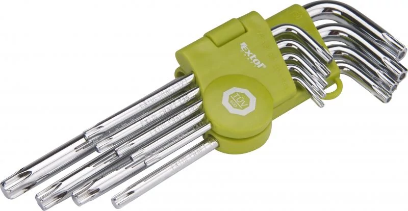 Kiváló minőségű, teljes hosszúságban keményített Cr40 acél. A torx kulcsok L-alakja lehetővé teszi a kifejtett erő maximális kihasználását.