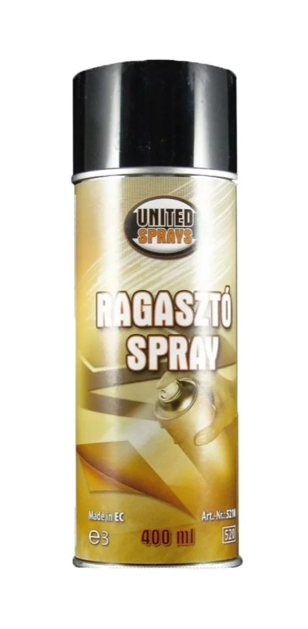 A United Sprays ragasztó spray gazdaságosan felhasználható a legkülönbözőbb alapfelületek ragasztására, melyekre gyorsan és kiválóan tapad. A csomagolás a termék hatékony és tiszta alkalmazását teszi lehetővé, melyet egy spray szelep biztosít. Használat után a spray-szelep lezár és a rendszer újra készen az azonnali újrafelhasználásra.
