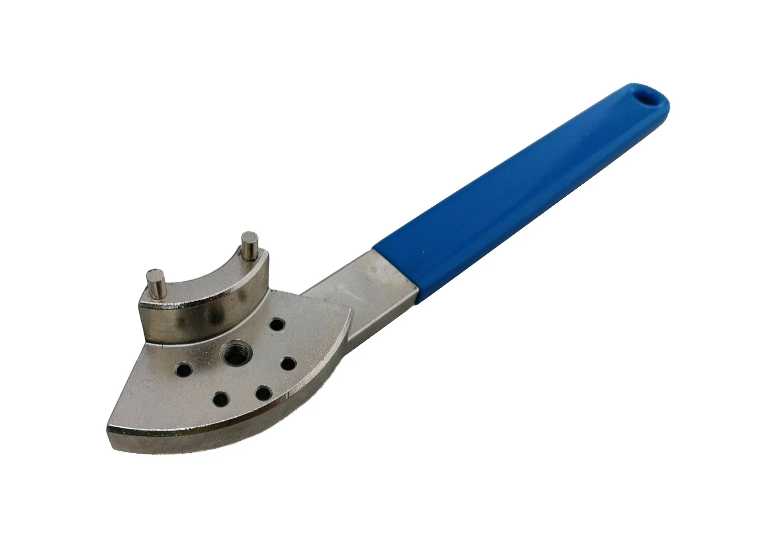 Vezérmű szíj feszítő szerszám, mellyel a feszítőkerék állását nagyon egyszerűen és precízen be lehet állítani a nehezen hozzáférhető helyeken is. A két illesztő csap segítségével könnyed és pontos illesztés alakítható ki. A hosszú kar miatt a szíj feszességének beállítása nem igényel nagy erőkifejtést és a rögzítés könnyebben kivitelezhető.