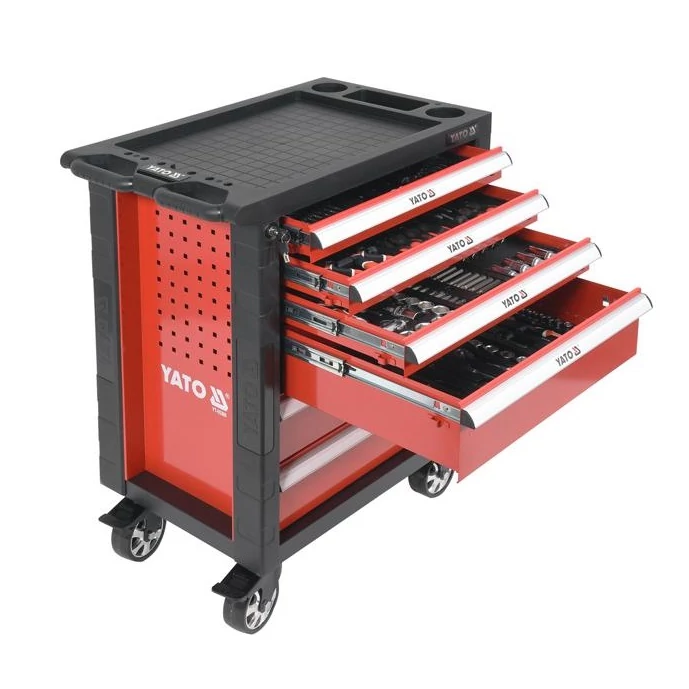 - A szerszámkocsi sarokvédői megakadályozzák a véletlen károsodást, például a karosszériáknál.