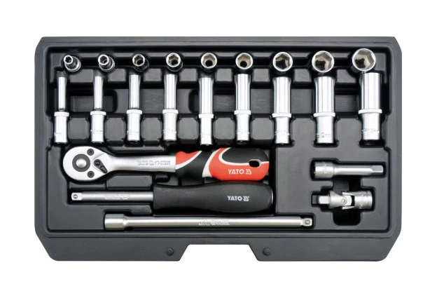 - 1/4" Kézi dugókulcsok (L=25mm): 4, 5, 6, 7, 8, 9, 10, 11, 12, 13, 14 mm